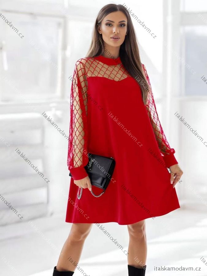 Šaty krátké elegantní dlouhý rukáv dámské (S/M/L ONE SIZE) ITALSKÁ MÓDA IMD25357