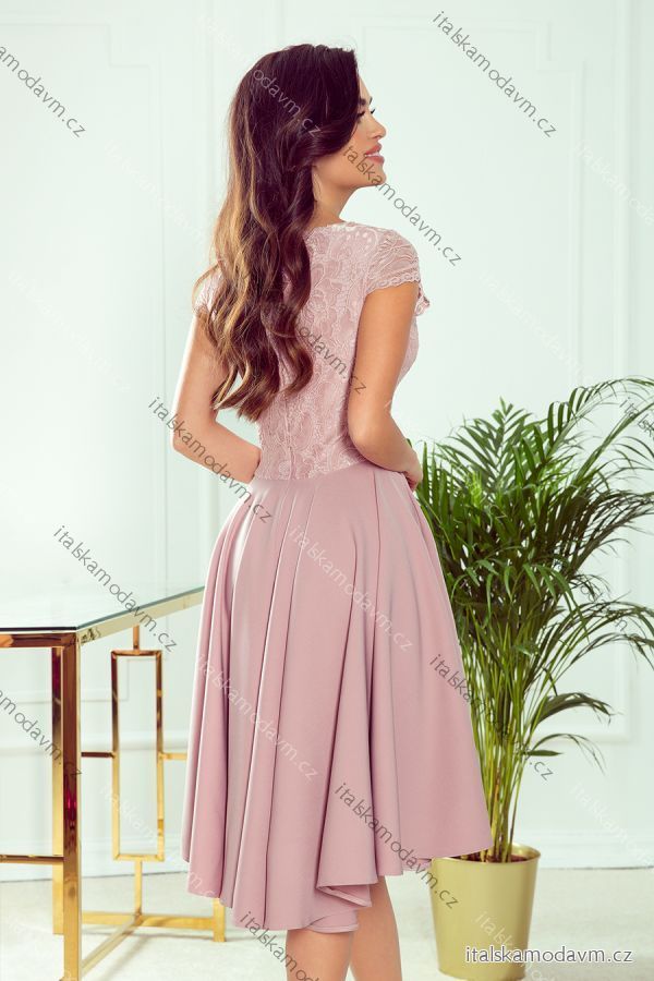 Šaty krátké elegantní společenské krátký rukáv PATRICIA (S-3XL) polská móda NMC-300-1/DU růžová L