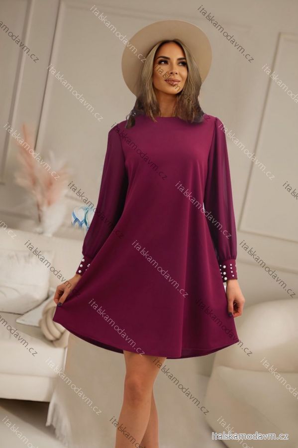 Šaty krátké elegantní teplé dlouhý rukáv dámské nadrozměr (46/48/50 ONE SIZE) ITALSKÁ MÓDA IMD25322