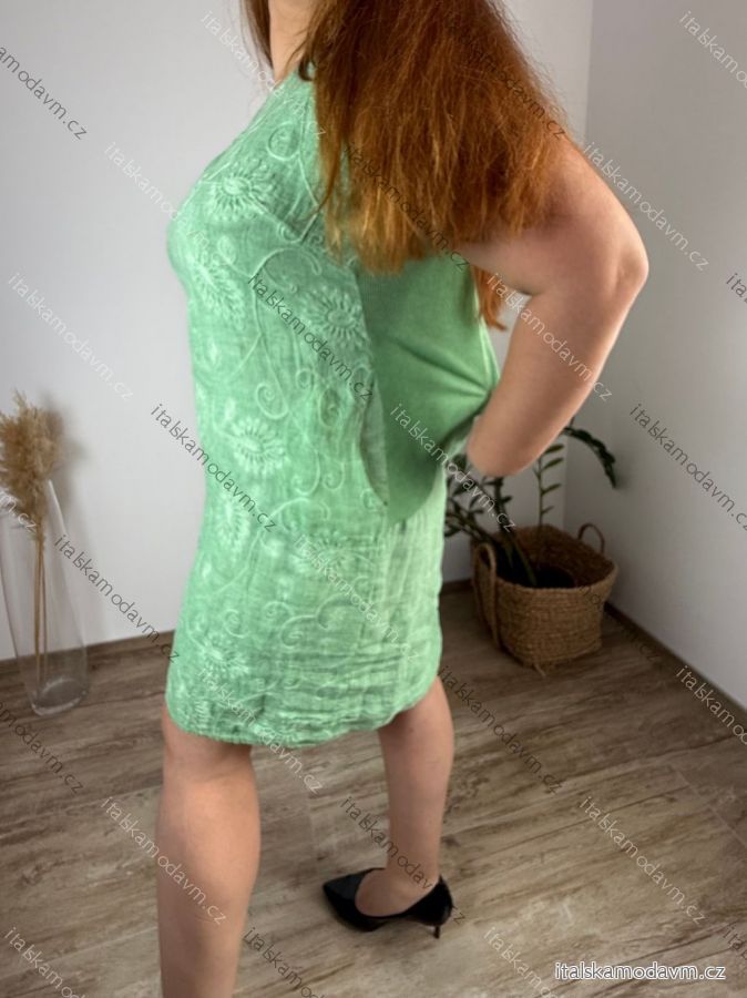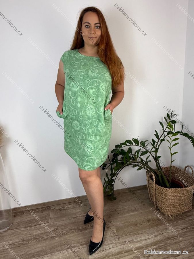 Šaty krátké lněné letní krátký rukáv dámské nadrozměr (M-L-XL-2XL-3XL) ITALSKÁ MÓDA IMSM251114/DU zelená M