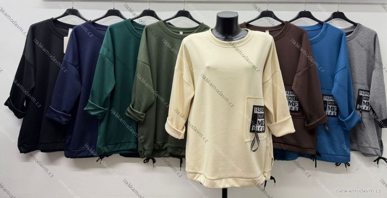 Šaty krátké mikinové dlouhý rukáv dámské nadrozměr (54/56/58 ONE SIZE) ITALSKÁ MÓDA IM425851