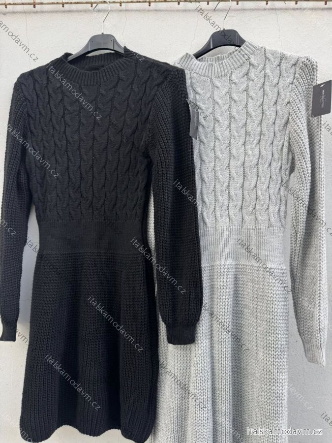 Šaty krátké pletené dlouhý rukáv dámské (S/M/L ONE SIZE) ITALSKÁ MÓDA IMD24490
