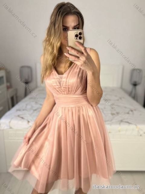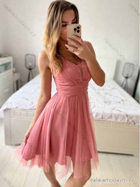 ZBOŽÍ (21649) > Šaty krátké společenské na ramínka dámské (S/M ONE SIZE) ITALSKÁ MÓDA IMPSH23C662/DU S/M starorůžová