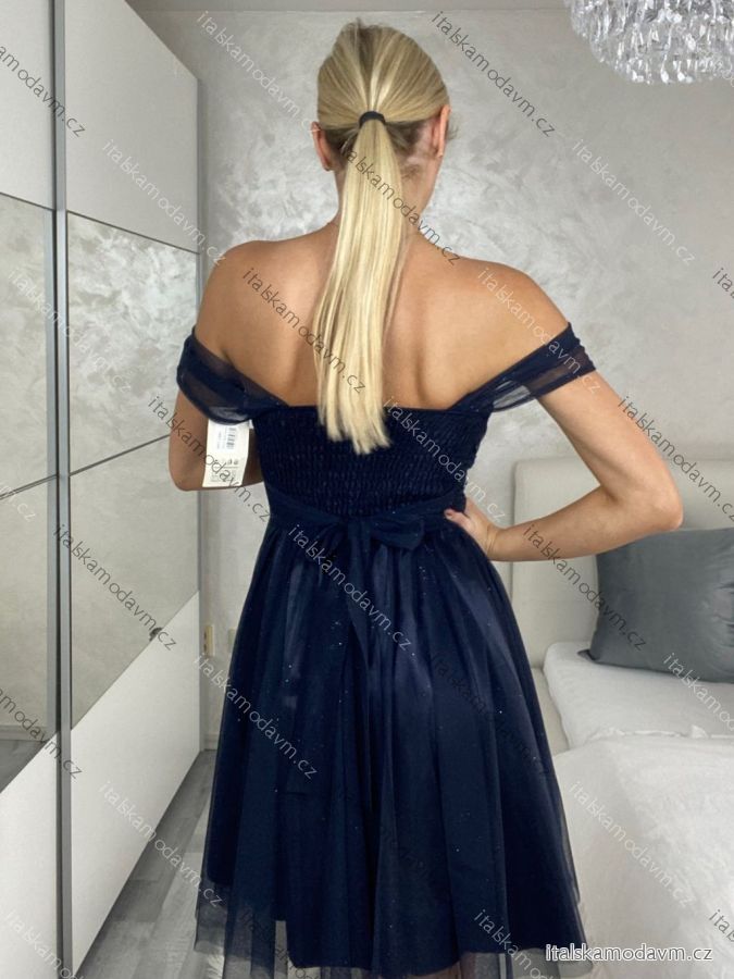 Šaty krátké společenské třpytivé na ramínka dámské ZUSA (S/M ONE SIZE) ITALSKÁ MÓDA IMPSH24C681/DUR S/M tmavě modrá