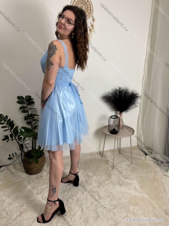 ZBOŽÍ (22043) > Šaty krátké společenské třpytivé na ramínka dámské (S/M ONE SIZE) ITALSKÁ MÓDA IMC24462/DUR světle modrá S/M