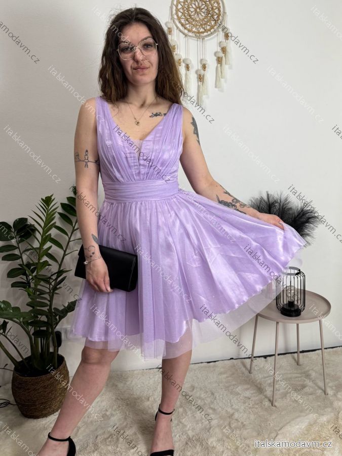 Šaty krátke spoločenské trblietavé na ramienka dámske (S/M ONE SIZE) TALIANSKA MÓDA IMC24462/DUR světle fialová S/M/L