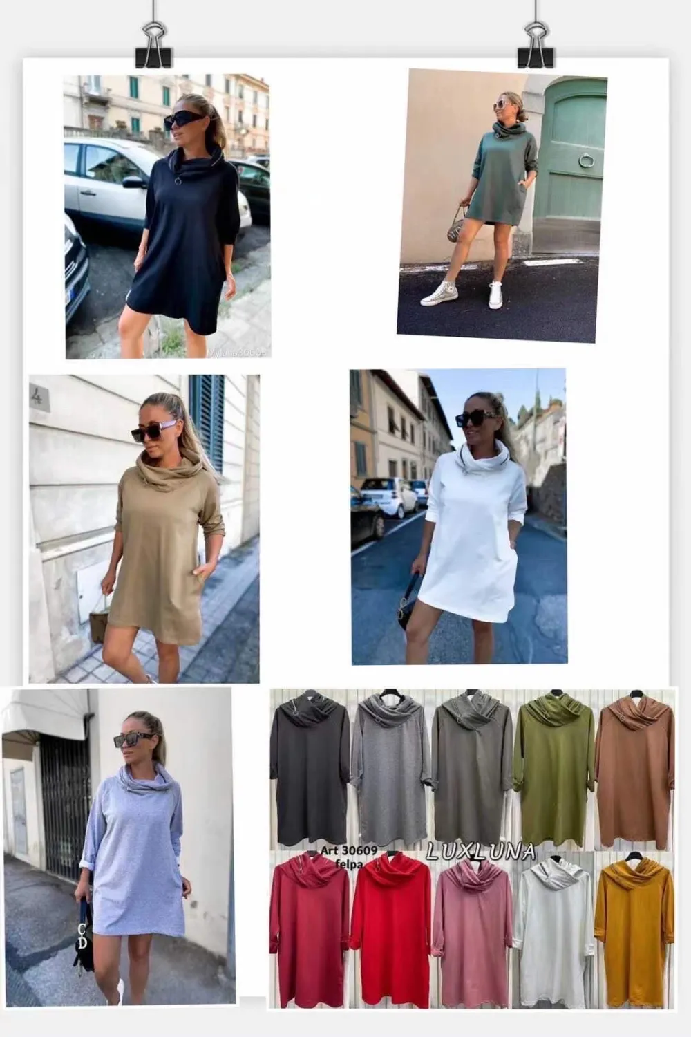 Šaty krátké volnočasové 3/4 dlouhý rukáv dámský (S/M/L ONE SIZE) ITALSKÁ MÓDA IMPLI2530609