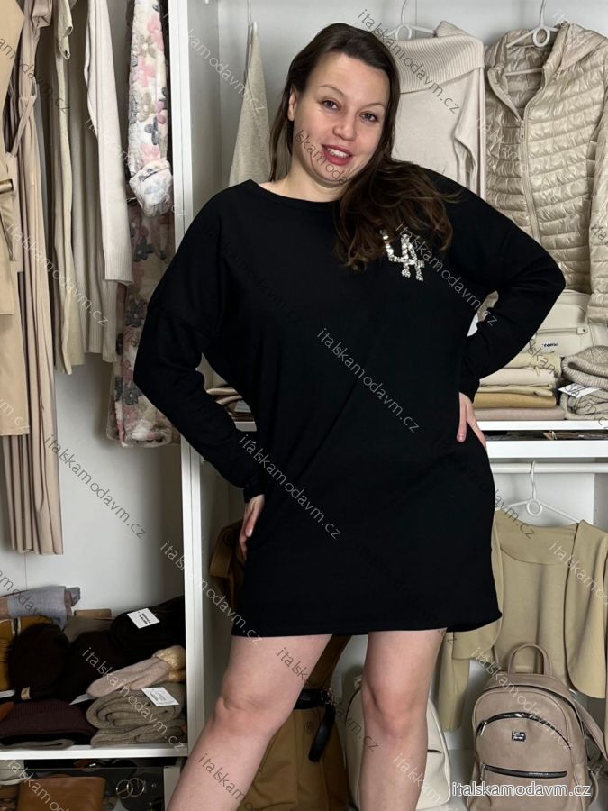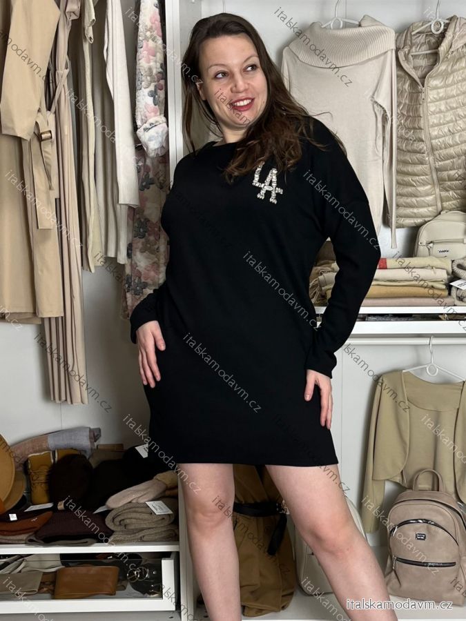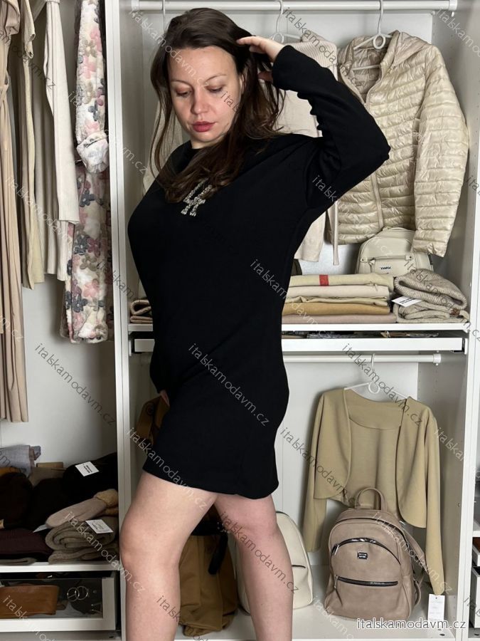 Šaty krátké volnočasové teplé oversize dlouhý rukáv dámské LA (M/L/XL ONE SIZE) ITALSKÁ MÓDA IMD25204/DU M/L/XL Černá