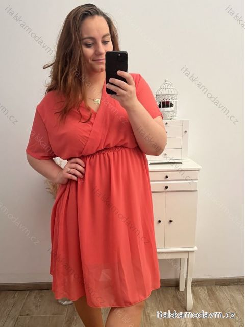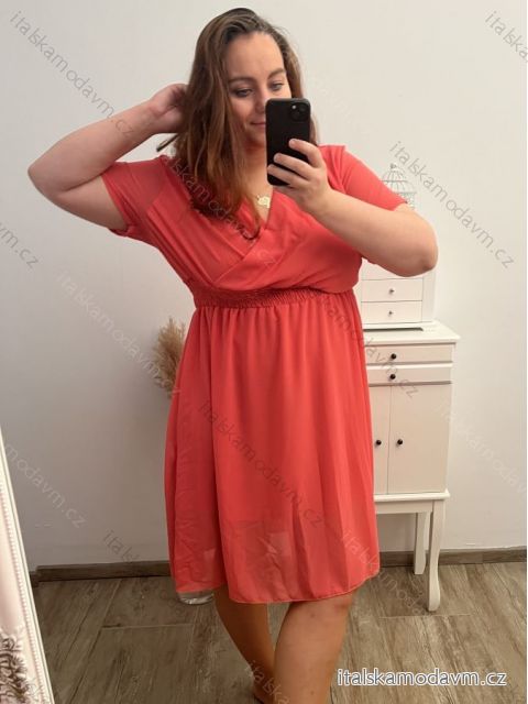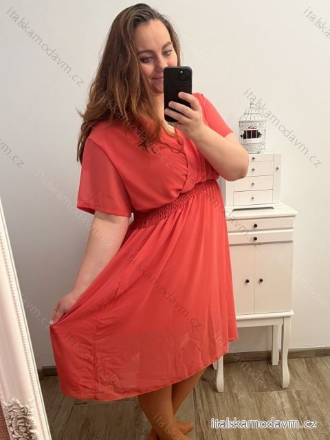 ZBOŽÍ (22988) > Oblečení dámské (18330) > Šaty (9717) > Šaty krátký rukáv dámské nadrozměr (2XL/3XL ONE SIZE) ITALSKá MóDA IM423MILANO/DUR lososová