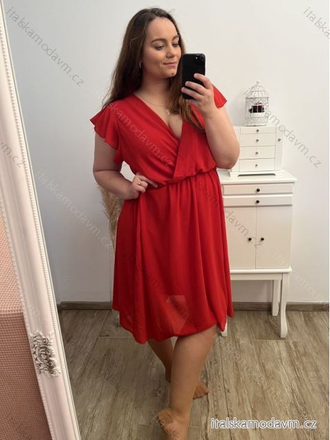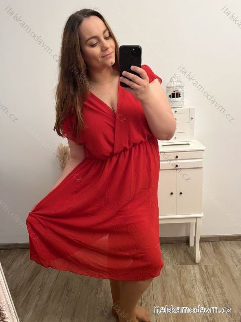 Šaty krátký rukáv dámské nadrozměr (XL/2XL/3XL ONE SIZE) ITALSKá MóDA IM423ANTONIA/DU 2XL/3XL červená