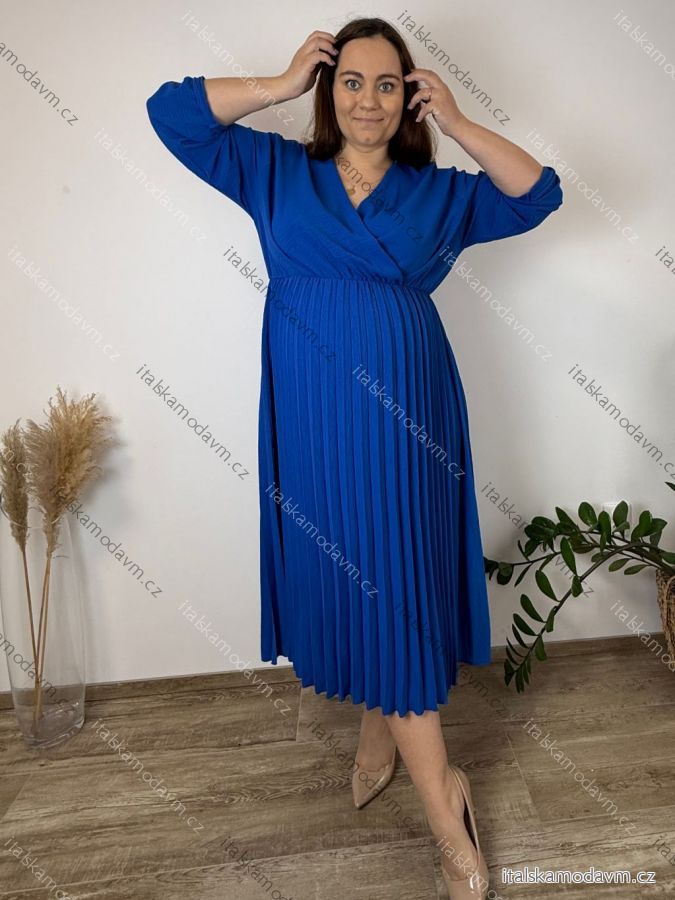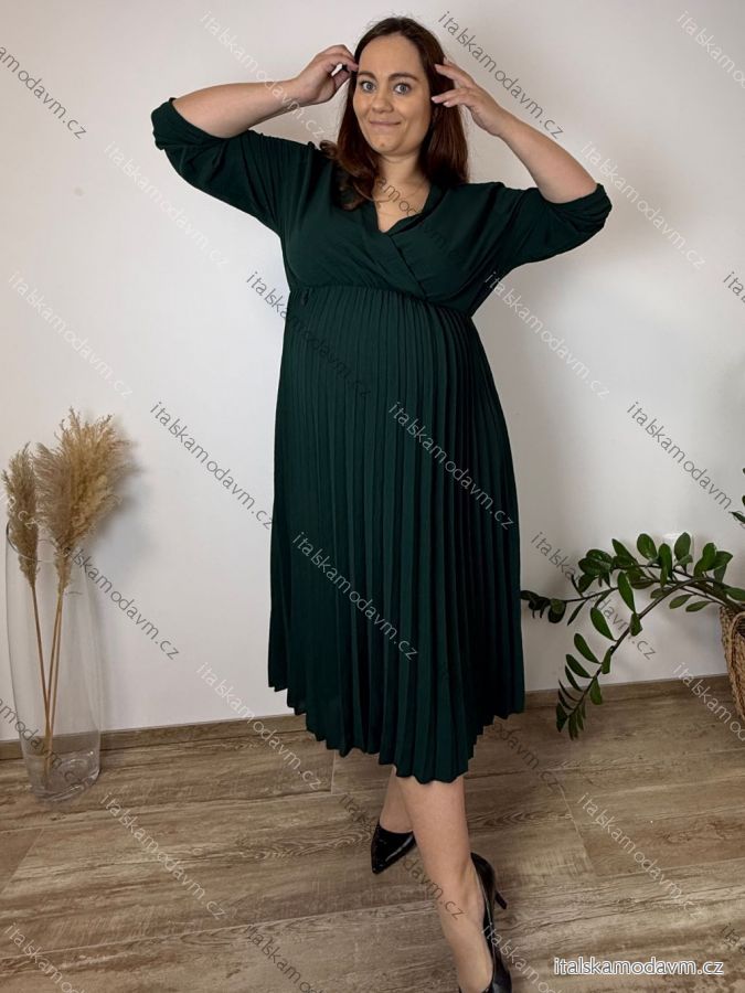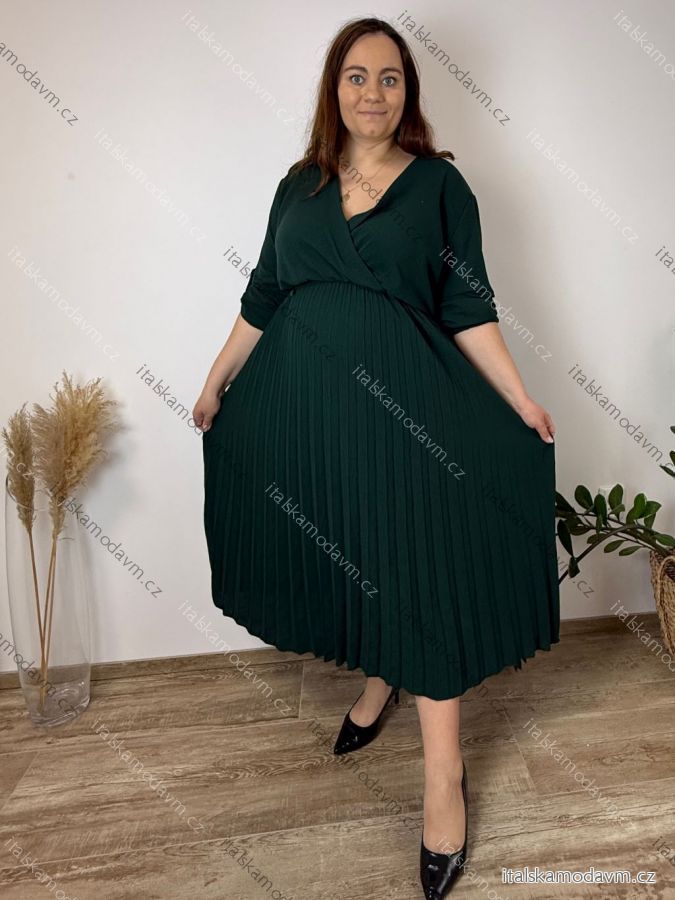 Šaty letné elegantní s 3/4 rukávem dámske nadrozmer ELIS (50/52/54 ONE SIZE) TALIANSKA MÓDA IM4260025/DUR 50/52/54 tmavo smaragdová