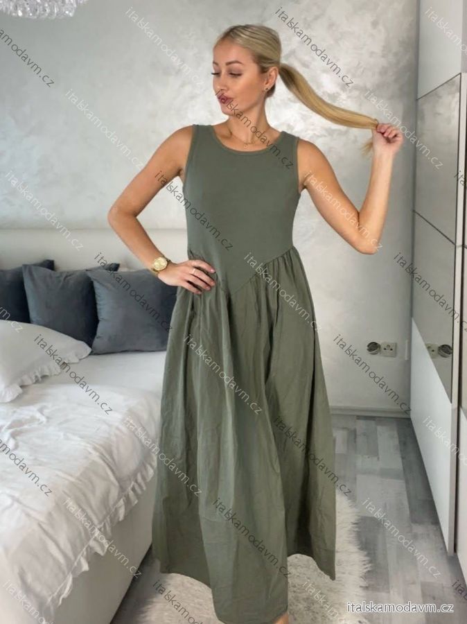 Šaty letní bez rukávu dámské PAGE (S/M/L ONE SIZE) ITALSKÁ MÓDA IM725020/DU S/M/L zelená khaki