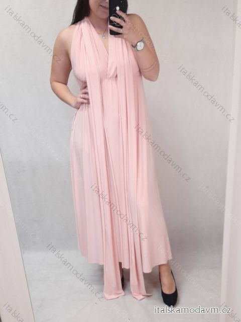 Šaty letní dlouhé na ramínka variabilní zavazování dámské (S/M/L/XL ONE SIZE) ITALSKÁ MÓDA IMM223000HG ružová svetlá L / XL