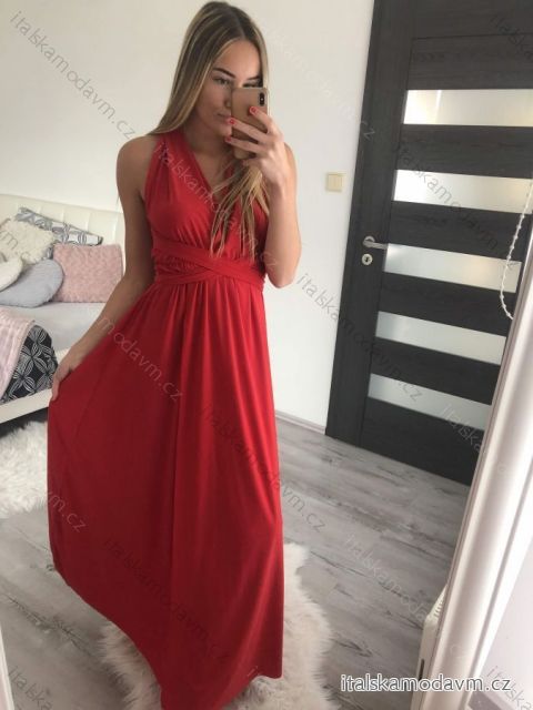 Šaty letní dlouhé na ramínka variabilní zavazování dámské (S/M/L/XL ONE SIZE) ITALSKÁ MÓDA IMM223000HG ružová tmavá L / XL