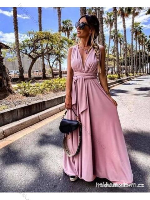 Šaty letní dlouhé na ramínka variabilní zavazování dámské (S/M/L/XL ONE SIZE) ITALSKÁ MÓDA IMM223000HG modrá tmavá L / XL