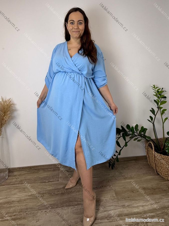 ZBOŽÍ (21938) > Šaty letní elegantní s 3/4rukávem dámské nadrozměr RADKA (50/52/54 ONE SIZE) ITALSKÁ MÓDA IM4260026/DUR 50/52/54 světle modrá