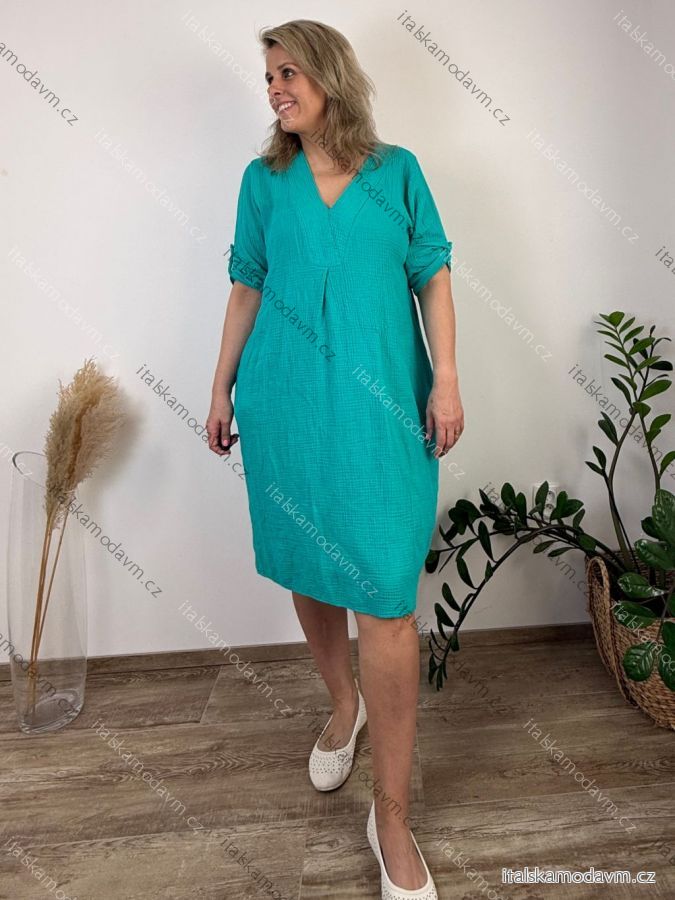 Šaty letní mušelínové 3/4 dlouhý rukáv dámské nadrozměr IRMA (48/50/52 ONE SIZE) ITALSKÁ MÓDA IM426088/DUR 48/50/52 tyrkysová