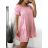 Krátké letní mušelínové šaty s krátkým rukávem a carmen výstřihem. Šaty mají přes prsa žabičkování, díky kterému jsou přes prsa pružné.