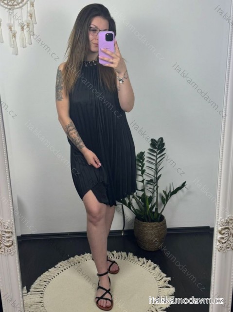 Šaty letní skládané bez rukávu dámské (S/M/L ONE SIZE) ITALSKÁ MÓDA IMWGB24029 Černá S/M