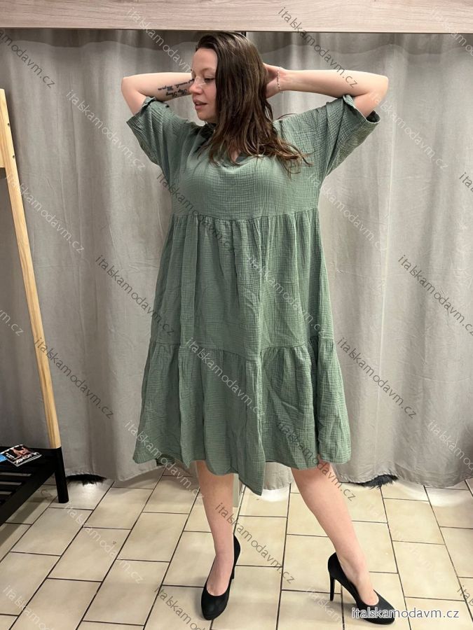 Šaty letný mušelín bavlnené rukáv dámske nadrozmer (50/52/54 ONE SIZE) TALIANSKA MÓDA IM425161