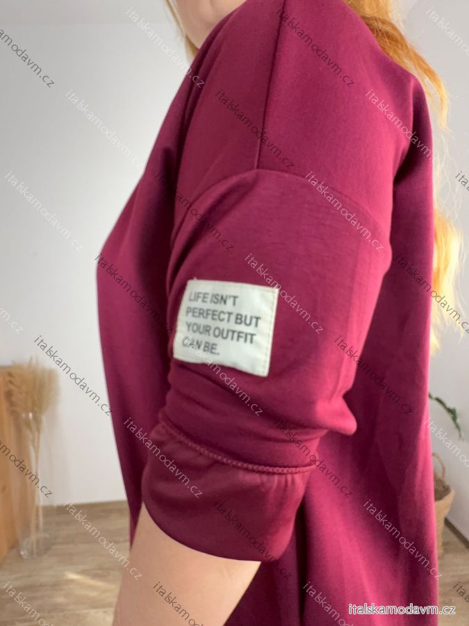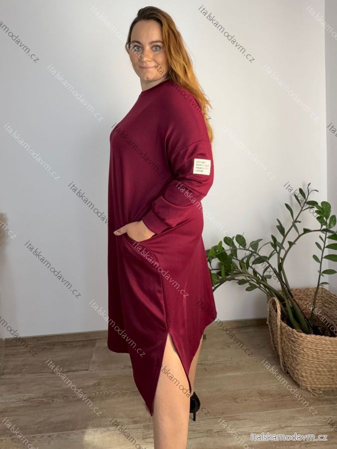 Šaty mikinové dlouhý rukáv dámské nadrozměr ANNA (54/56/58 ONE SIZE) ITALSKÁ MÓDA IM425534