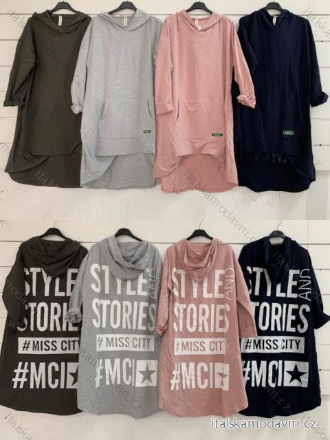 Šaty mikinové dlouhý rukáv dámské (S/M ONE SIZE) ITALSKÁ MÓDA IMWY21730 Černá S/M
