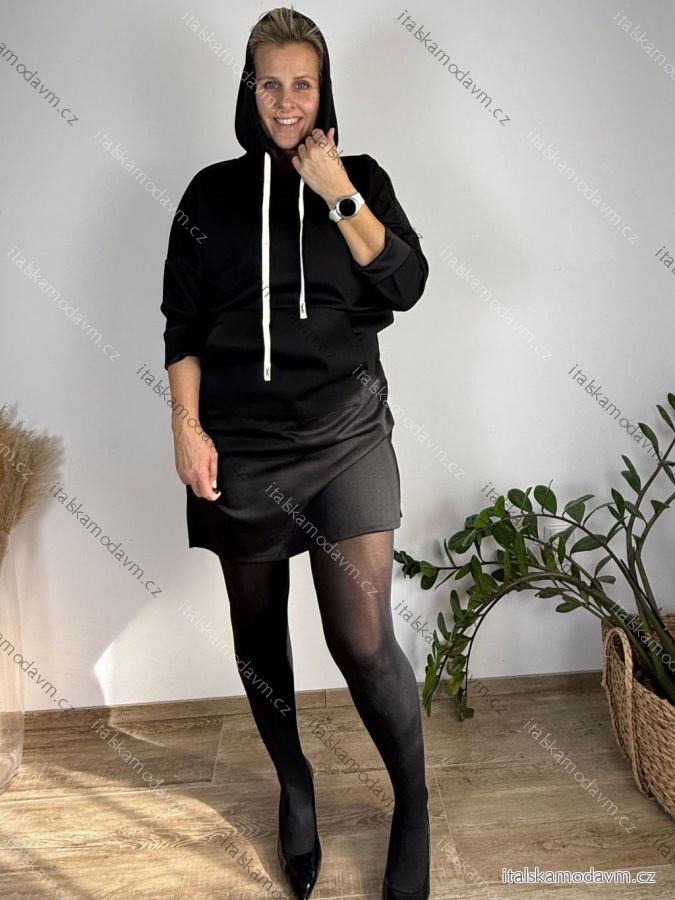Šaty mikinové s kapucí máslové dlouhý rukáv dámské nadrozměr KIKA (42/44/46 ONE SIZE) ITALSKÁ MÓDA IM425714
