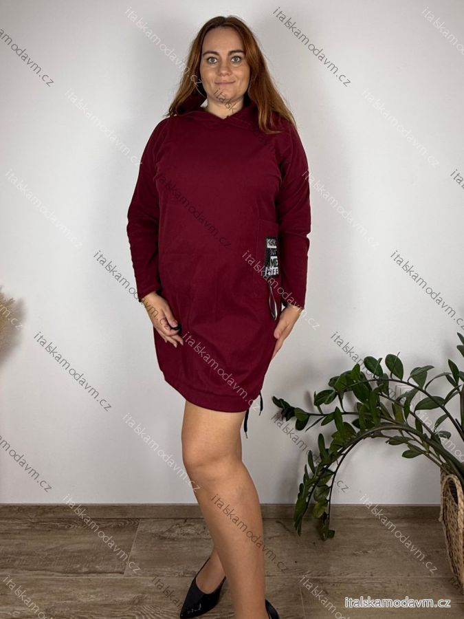 Šaty mikinové teplé dlouhý rukáv dámské nadrozměr ZORA (52/54/56 ONE SIZE) ITALSKÁ MÓDA IM425693
