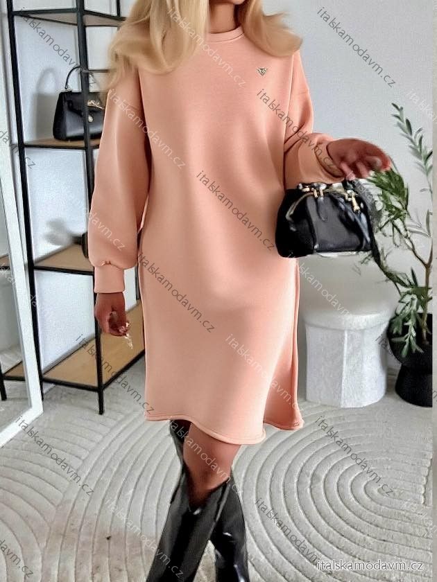 Šaty mikinové teplé dlouhý rukáv dámské nadrozměr (48/50/52 ONE SIZE) ITALSKÁ MÓDA IMC25484