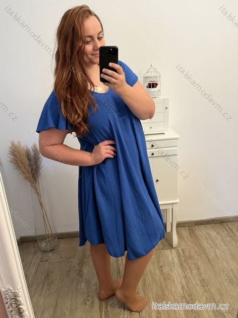Šaty oversize krátký rukáv dámské nadrozměr (3XL/4XL/5XL ONE SIZE) ITALSKÁ MÓDA IMBM23OVER/DR 4XL/5XL královská modrá