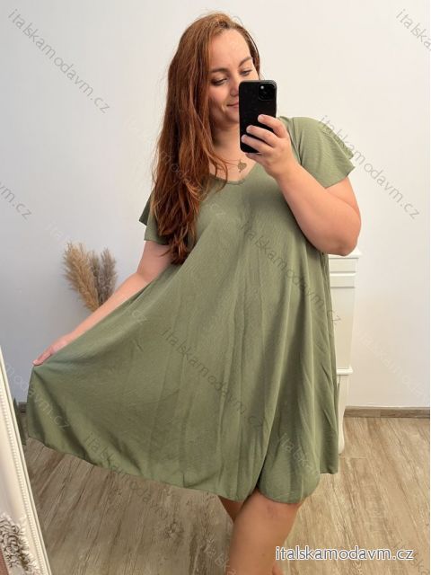 Šaty oversize krátky rukáv dámske nadrozmer (3XL/4XL/5XL ONE SIZE) TALIANSKA MÓDA IMBM23OVER/DR 4XL / 5XL khaki