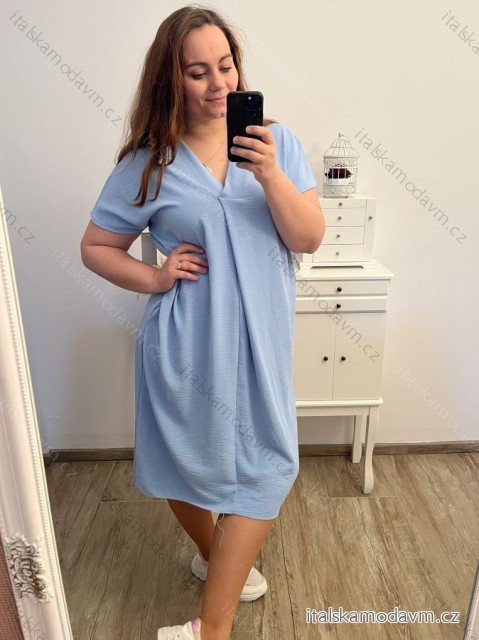 ZBOŽÍ (21607) > Oblečení dámské (17431) > Šaty (9093) > Šaty oversize krátký rukáv dámské nadrozměr (4XL/5XL ONE SIZE) ITALSKÁ MÓDA IMD22139/DR světle modrá