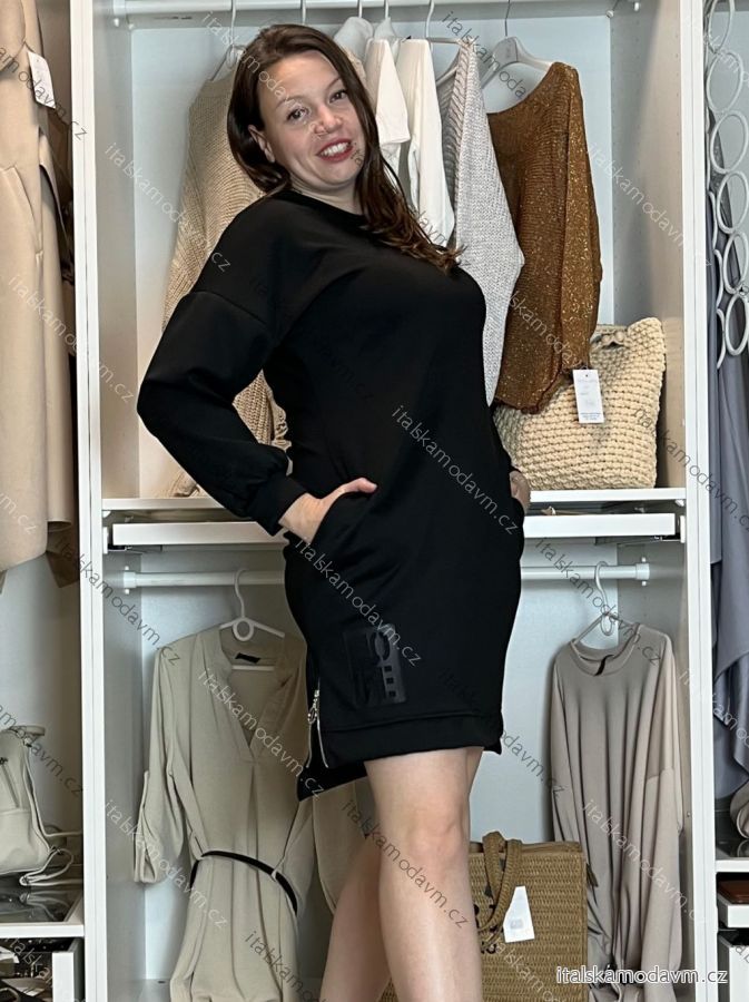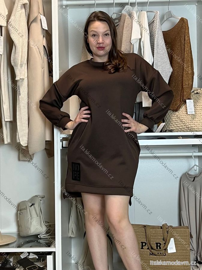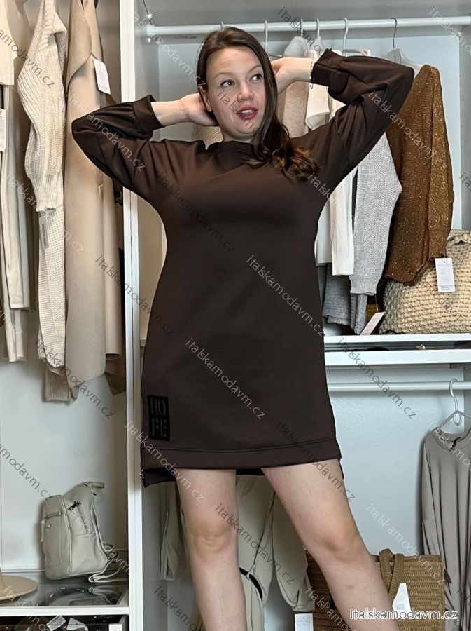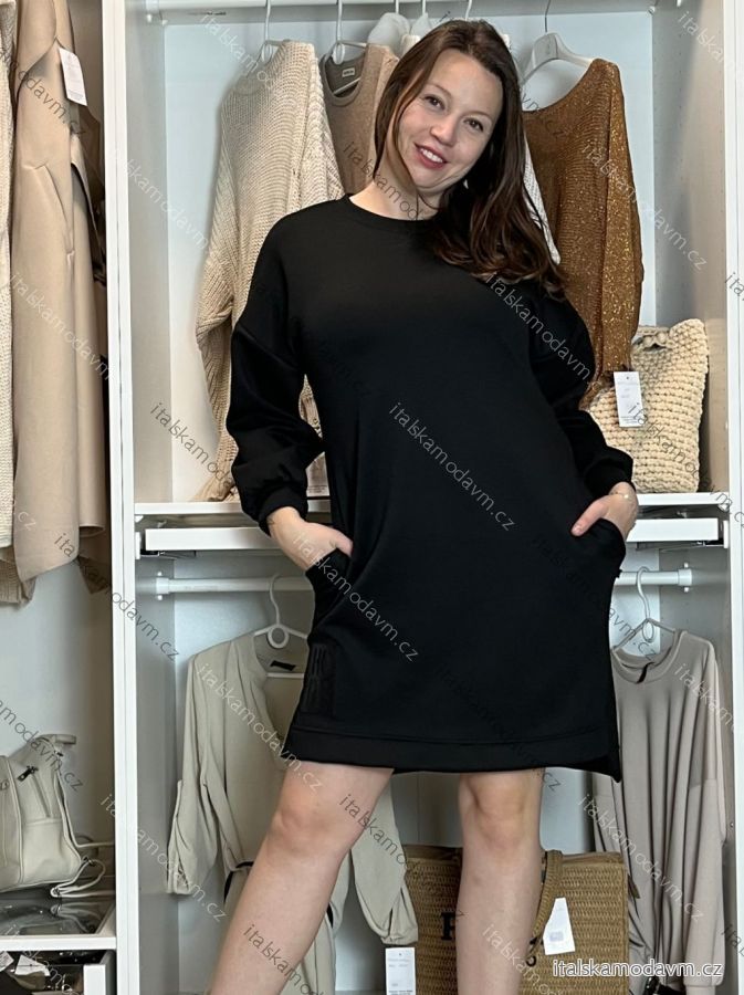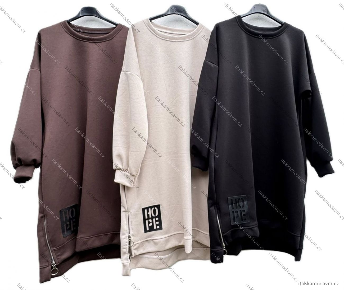 Šaty oversize mikinové máslové dlouhý rukáv dámské ANNA (S/M/L ONE SIZE) ITALSKÁ MÓDA IMD25164