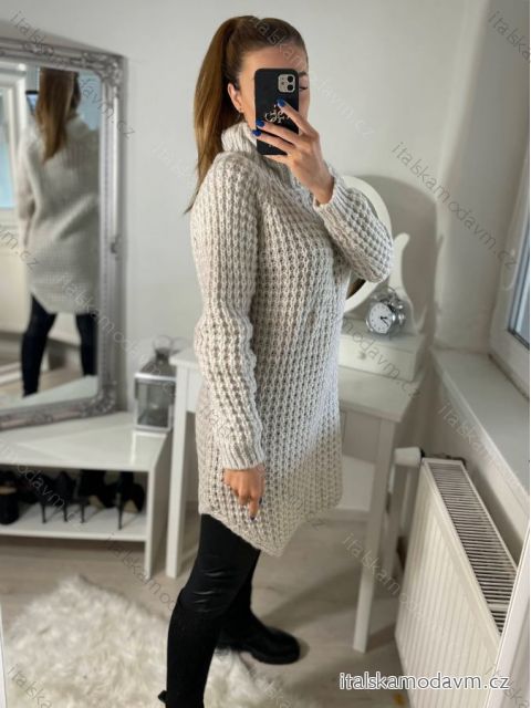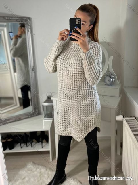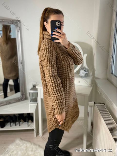 Šaty pletené s rolákom dlhý rukáv dámske (S/M ONE SIZE) TALIANSKA MÓDA IM4227200/DR S/M hnedá