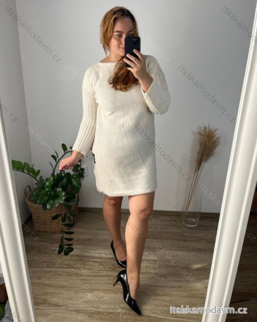 Šaty pletené sveter predĺžený dámske nadrozměr (52/54 ONE SIZE) TALIANSKÁ MÓDA IMD24VERONA/DU 52/54 tmavo smaragdová