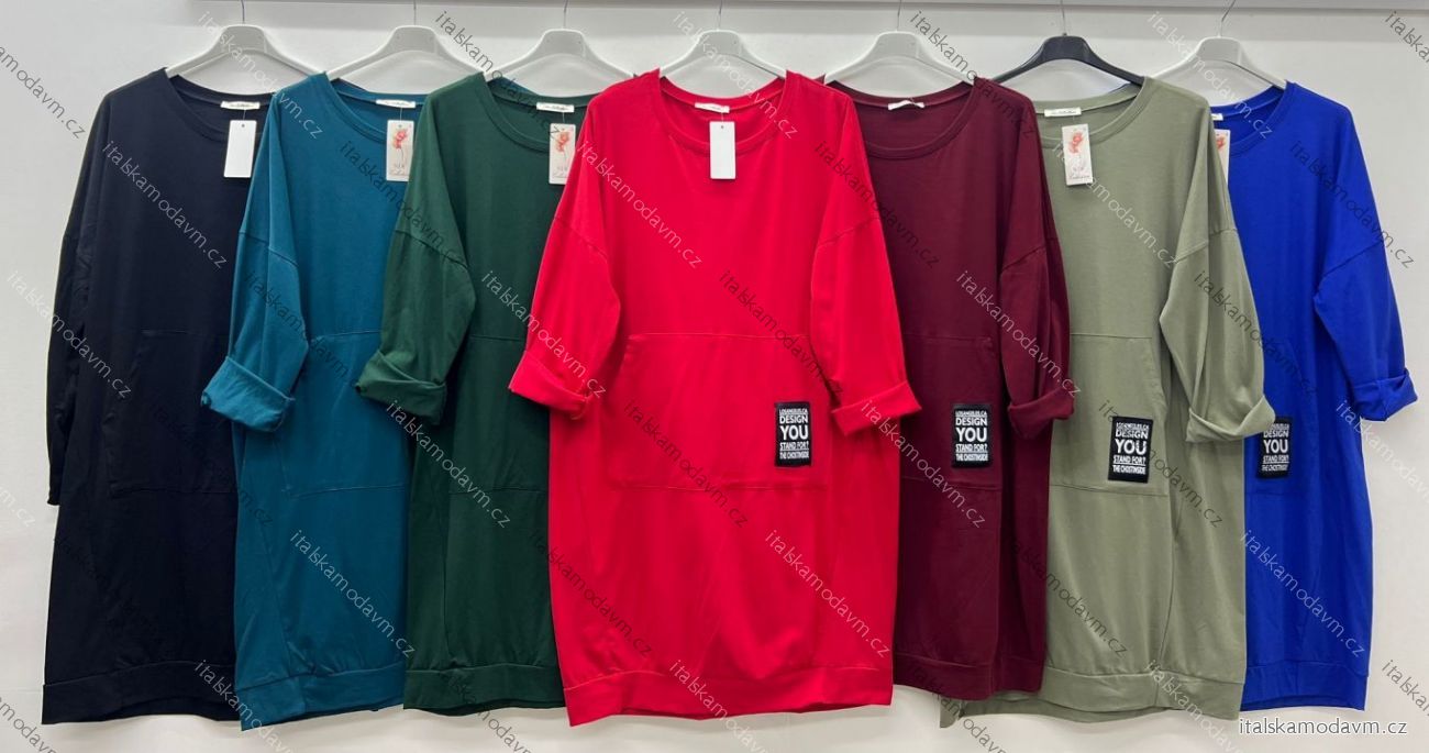 Šaty s kapsou dlouhý rukáv dámské nadrozměr ERIKA (52/54/56 ONE SIZE) ITALSKÁ MÓDA IM425561