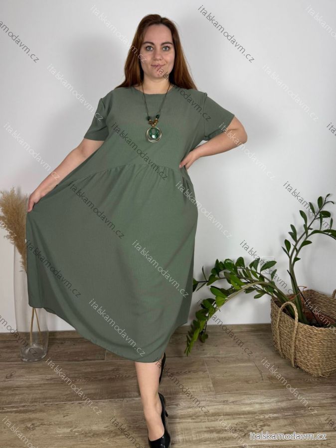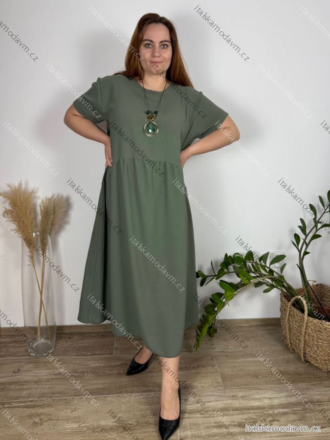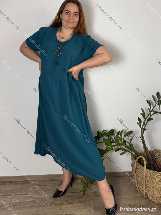 Šaty s přívěskem dlouhé krátký rukáv dámské nadrozměr (3XL/4XL/5XL ONE SIZE) ITALSKá MóDA IM424277