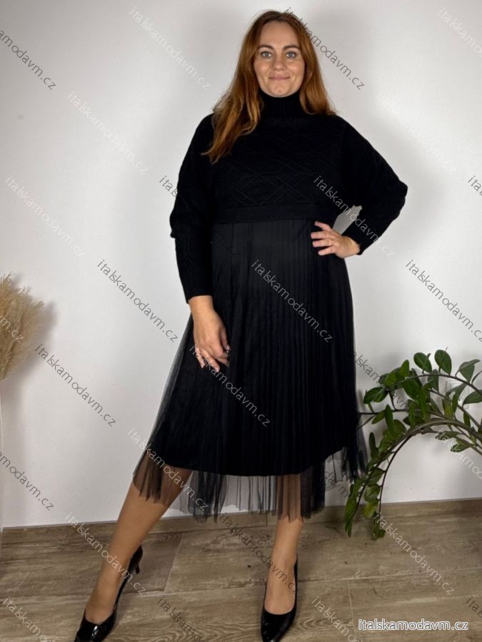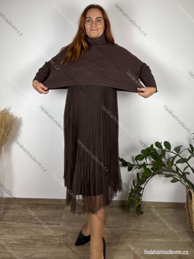 Šaty se svetrem dlouhý rukáv dámské nadrozměr ANIZA (42/44/46 ONE SIZE) ITALSKÁ MÓDA IMSM251172/DUR 42/44/46 hnědá