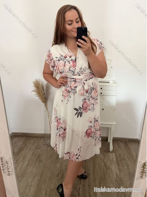 ZBOŽÍ (22368) > Šaty šifonové krátký rukáv dámské nadrozměr (XL/2XL ONE SIZE) ITALSKÁ MÓDA IMWGM231263/B/DU XL/2XL bílá