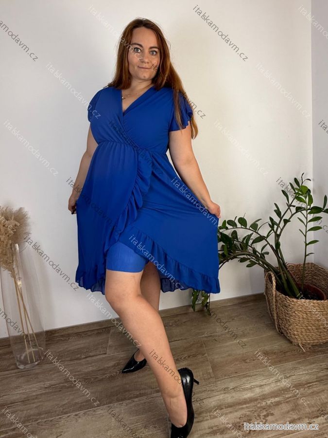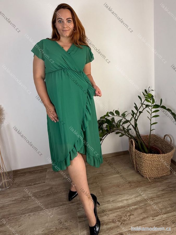 ZBOŽÍ (23042) > Šaty šifonové krátký rukáv dámské nadrozměr (46/48/50 ONE SIZE) ITALSKÁ MÓDA IM424468/DU - tmavě růžová - 48/50