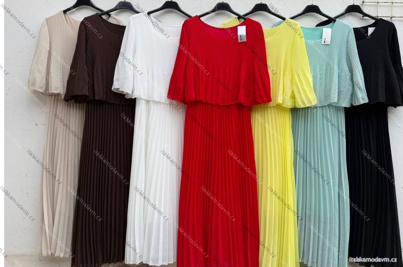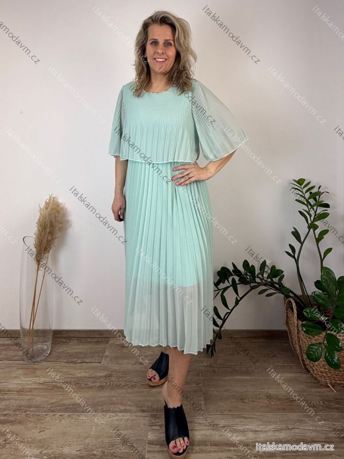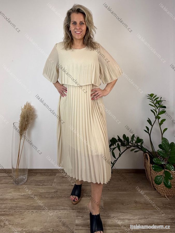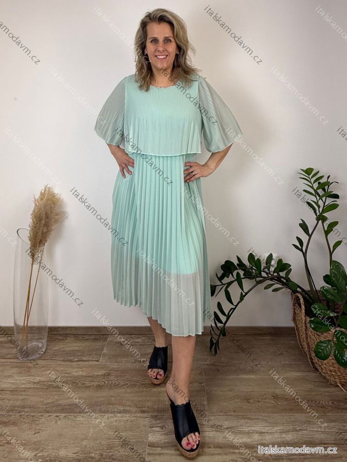 Šaty šifonové plisované společenské krátký rukáv dámské nadrozměr INGRID (46/48/50 ONE SIZE) ITALSKÁ MÓDA IMD26000124