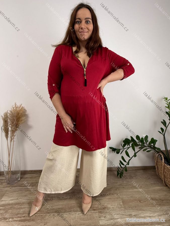 ZBOŽÍ (22192) > Šaty so zipsom dlhý rukáv dámske nadrozmer MICHALE (54/56/58 ONE SIZE) TALIANSKA MÓDA IMBM24002/DUR 54/56/58 tmavo smaragdová
