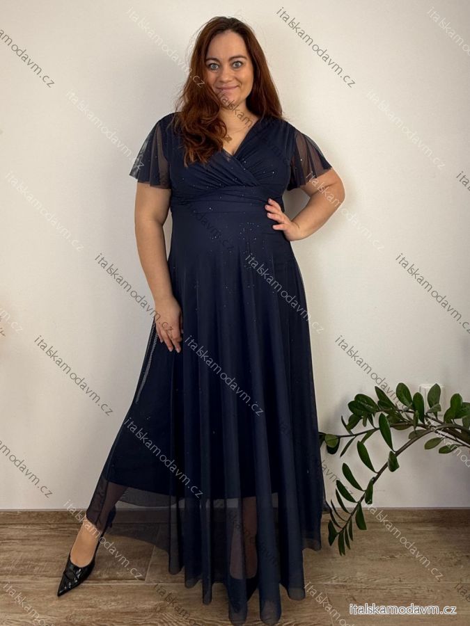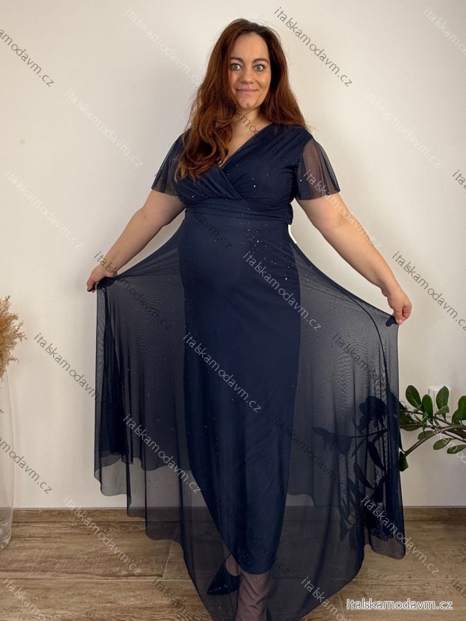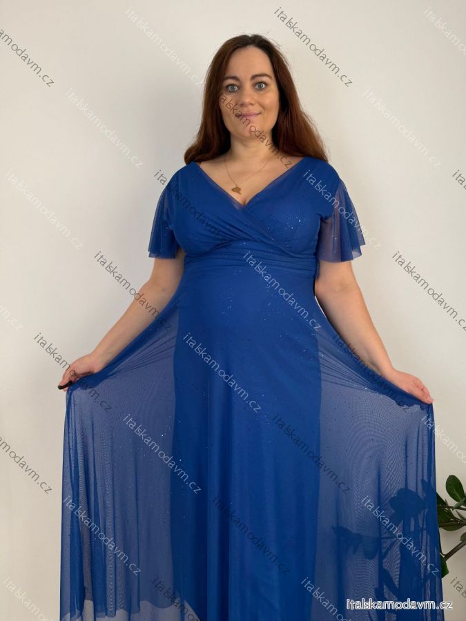 ZBOŽÍ (22026) > Šaty společenské dlhé dlhý rukáv dámske nadrozmer ELIEN (42/44/46 ONE SIZE) TALIANSKA MÓDA IMWMY251287/DUR modrá kráľovská
