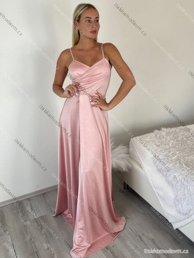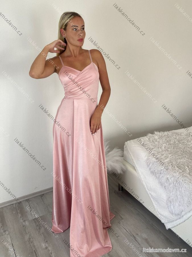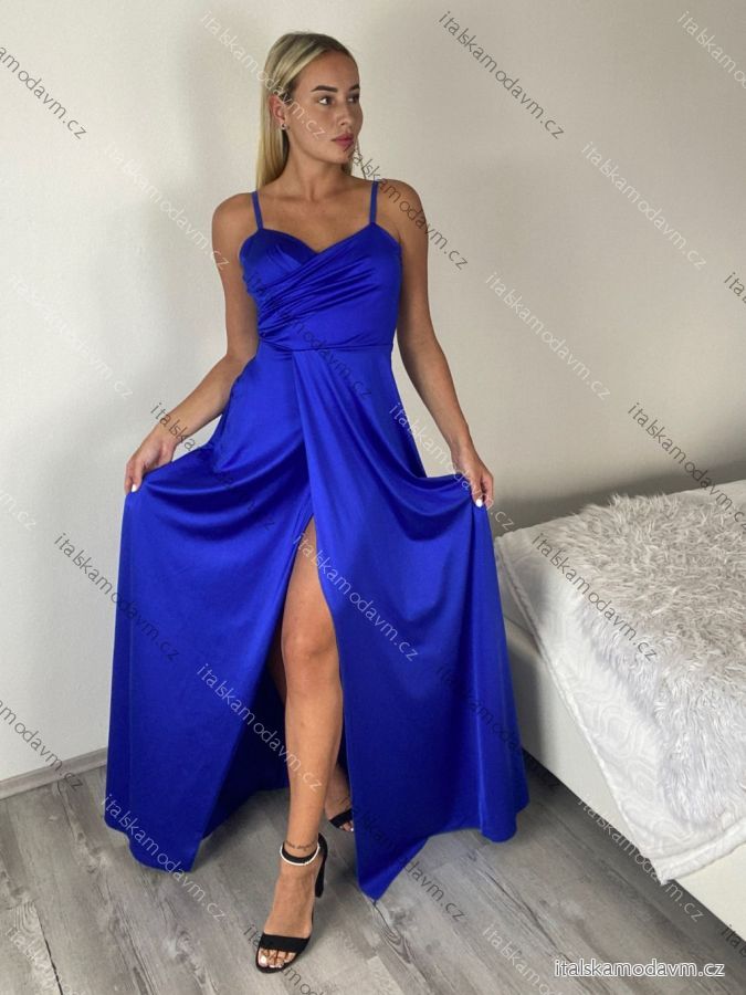Šaty společenské dlouhé na ramínka saténové dámské (XS/S/M ONE SIZE) ITALSKÁ MÓDA IMM25M40243/DU - Černá - S/M