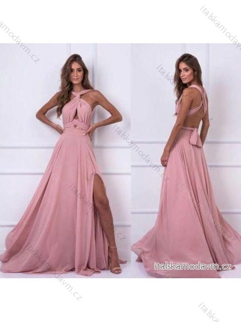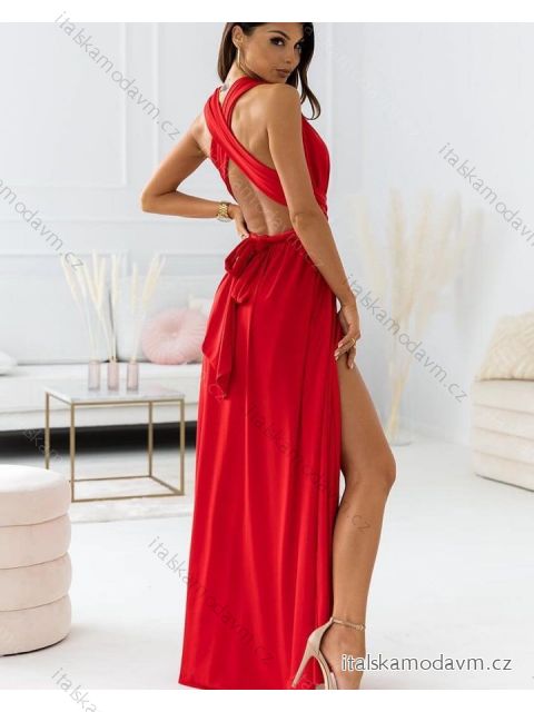 Šaty společenské dlouhé ramínka na variabilní zavazování dámské (S/M/L/XL ONE SIZE) ITALSKÁ MÓDA IMM223000HG cihlová, S/M/L