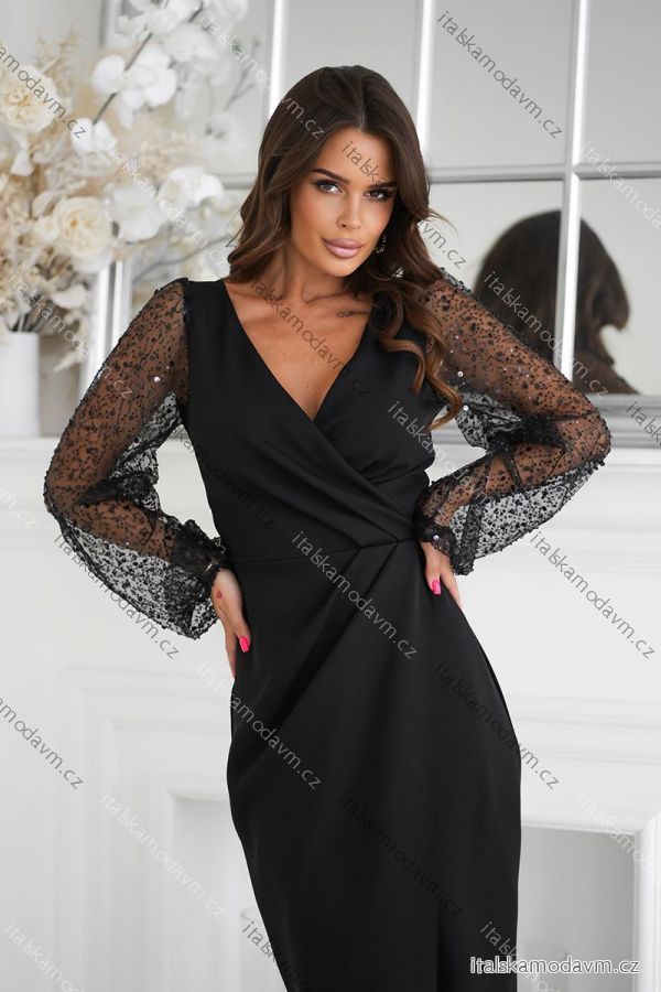 Šaty společenské dlouhý rukáv dámské (34-48) POLSKÁ MÓDA PMLBC25314-06 Černá 36
