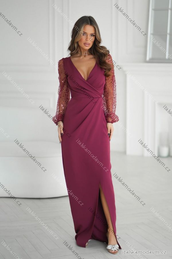Šaty společenské dlouhý rukáv dámské (34-48) POLSKÁ MÓDA PMLBC25314-10/DUR 44 vínová