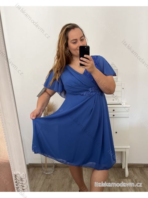 Šaty společenské elegantní šifonové krátký rukáv dámské nadrozměr (XL/2XL ONE SIZE) ITALSKÁ MÓDA IMM22ZO9013/DUR XL/2XL tmavě modrá