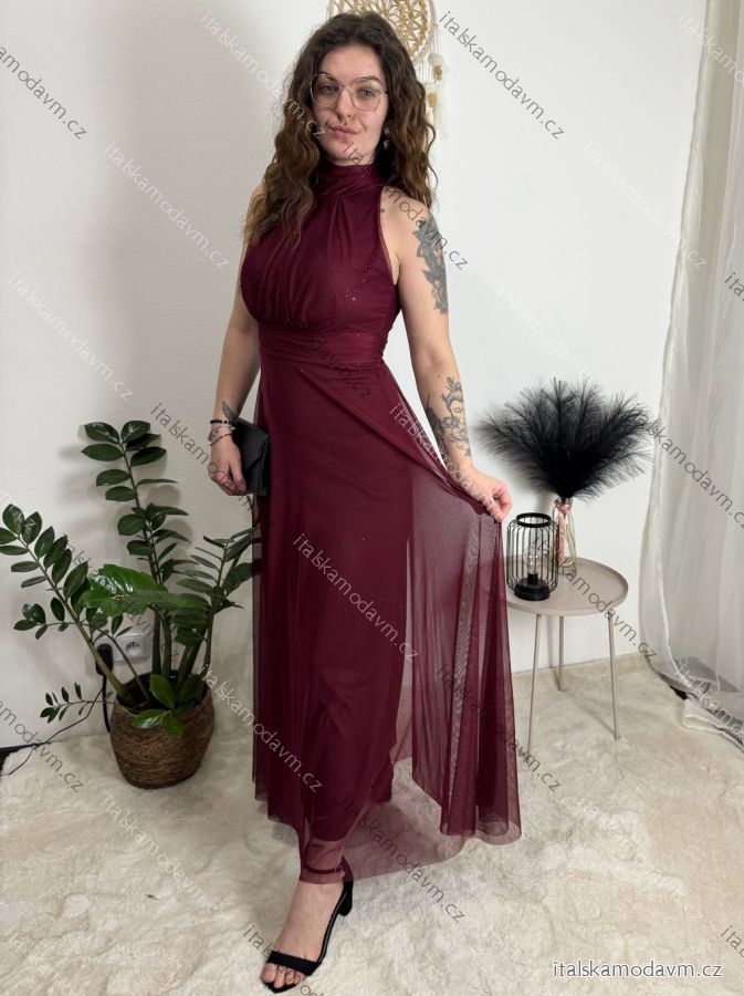 ZBOŽÍ (22025) > Šaty společenské elegantní třpytivé bez rukávu dámské KEYLA (S/M/L ONE SIZE) ITALSKÁ MÓDA IMPSH2520037/DR vínová S/M/L