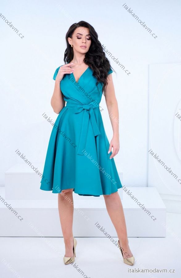 Šaty společenské krátký rukáv dámské (36-54) POLSKÁ MÓDA PMLMR23ROXANA-7/DUR 42 tyrkysová